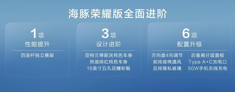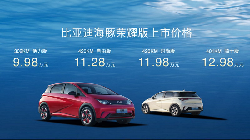 續(xù)航上,除保留了401km和420km版本外,海豚榮耀版還新增302km活力版,滿足通勤距離短、對續(xù)航里程需求沒那么長的用戶選擇。
