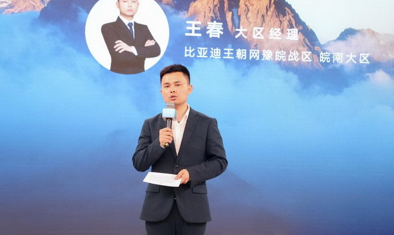 “宋Pro DM-i作為比亞迪功勛車型對宋家族做出的卓越的貢獻,2022年聯(lián)手宋家族其他成員以近50萬的年度銷量,代表中國品牌斬獲‘全品類SUV銷冠’;2023年持續(xù)領跑A級SUV市場,不斷向上突破,繼續(xù)沖擊合資防線?!北葋喌贤醭W(wǎng)銷售事業(yè)部豫皖戰(zhàn)區(qū)皖南大區(qū)經理王春在致辭中介紹道。