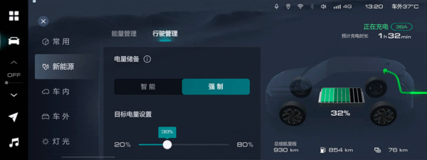 讓有露營、郊游需求的用戶能夠更加舒心暢玩,作為一款新能源SUV,哈弗梟龍MAX的保電功能再升級(jí),在我們出游時(shí)可以根據(jù)需求自主選擇保電模式。例如在城區(qū)里開車時(shí),有條件為車輛充電,我們可以選擇智能保電,車輛智能調(diào)節(jié)充放電,可以更優(yōu)先保證燃油經(jīng)濟(jì)性。而等到我們要出遠(yuǎn)門,在目的地不方便充電或者道路擁堵時(shí),長途高速又可以選擇強(qiáng)制保電模式,優(yōu)先電量保持,強(qiáng)制保持SOC,增強(qiáng)動(dòng)力性能,兩種保電模式,給你選擇自由。