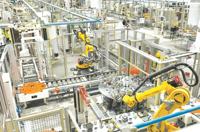 【▲位于蕪湖市繁昌經(jīng)開區(qū)的奇瑞埃科泰克新能源汽車DHT(油電混動變速系統(tǒng))生產(chǎn)線上,智能機械臂正在進行安裝調(diào)試作業(yè)。通訊員 楊華 朱海兵 攝】