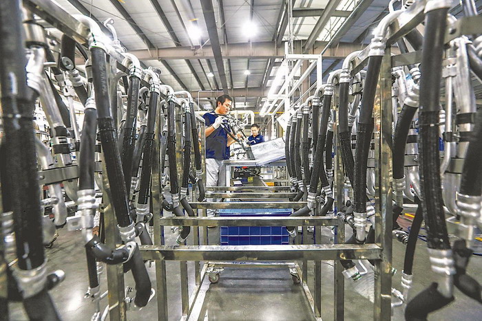 【9月11日,當(dāng)涂經(jīng)開(kāi)區(qū)騰龍汽車(chē)零部件制造有限公司汽車(chē)熱管理管路系統(tǒng)項(xiàng)目自動(dòng)化生產(chǎn)線(xiàn)上,一派繁忙景象,一件件汽車(chē)空調(diào)彎管陸續(xù)下線(xiàn)。特約攝影 王文生 通訊員 管瑞 攝】